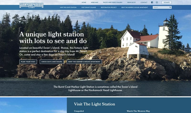 (Bangor, Maine) May 4th, 2018- Links Web Design is proud to announce the launch of a new website for Burnt Coat Harbor Light. It is a historic lighthouse on Swan’s Island, Maine, that has been restored by the Friends of the Swan Island Lighthouse (FOSIL). The lighthouse is open in summer for tours and walking trails around Swan’s Island, and you can even stay overnight in the lighthouse keeper’s apartment!