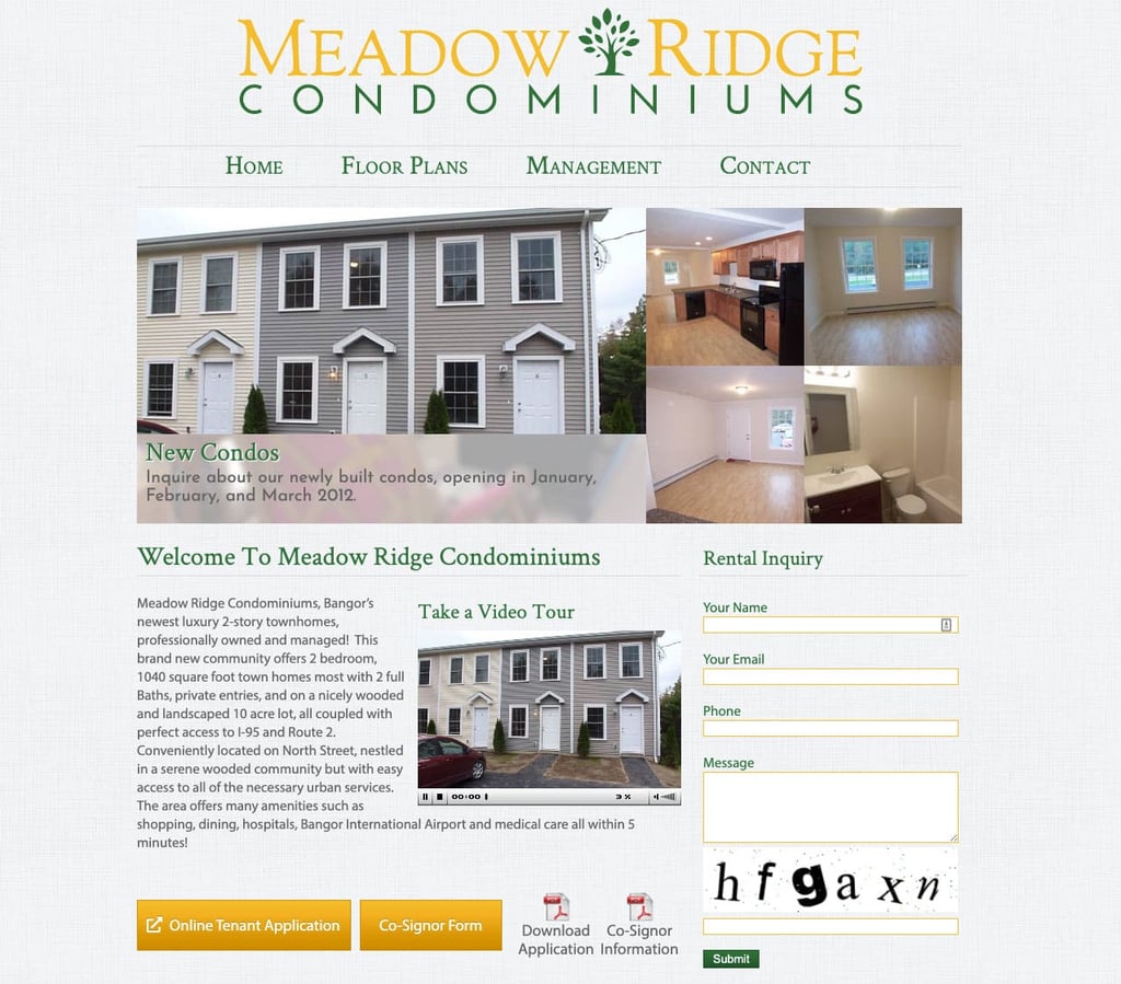 Meadow Ridge Condominiums, Bangor’s newest luxury 2-story townhomes, professionally owned and managed! This brand new community offers 2 bedroom, 1040 square foot town homes most with 2 full Baths, private entries, and on a nicely wooded and landscaped 10 acre lot, all coupled with perfect access to I-95 and Route 2. Conveniently located on North Street, nestled in a serene wooded community but with easy access to all of the necessary urban services. The area offers many amenities such as shopping, dining, hospitals, Bangor International Airport and medical care all within 5 minutes!